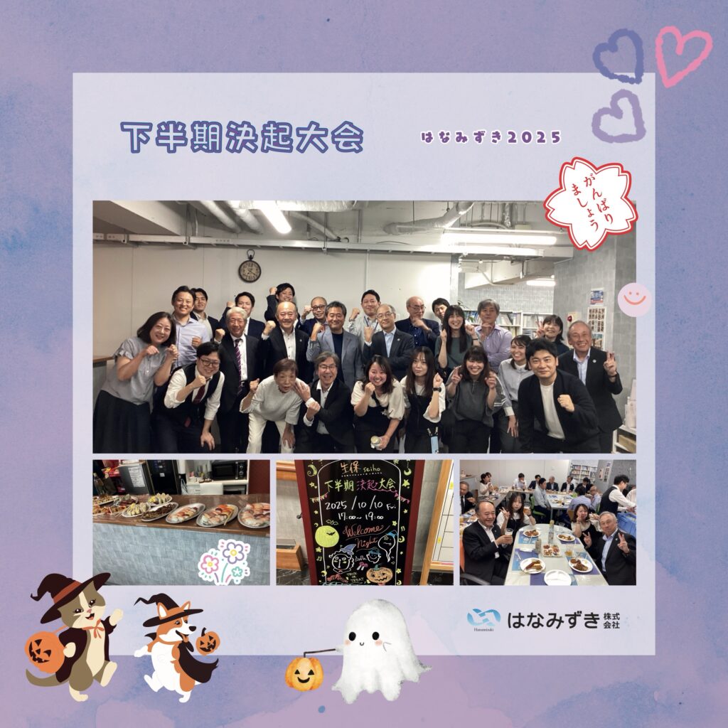 『お客様と社員の幸福人生を目指して』はなみずき全員一致団結して前進するために、10月中旬本社オフィスにて決起大会を開催しました。